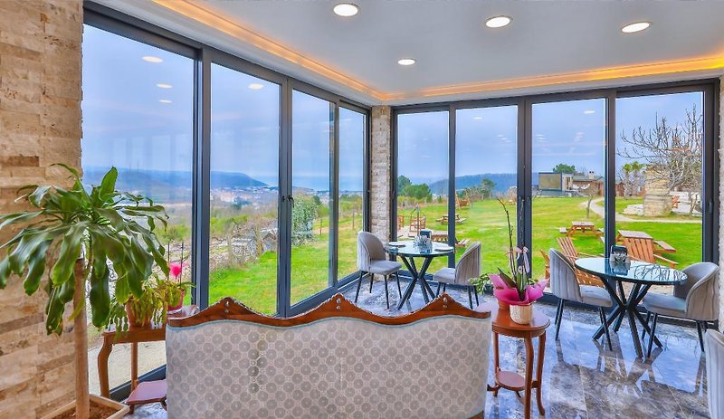 Das Agva Teras Garden Hotel liegt in der Region Agva in Istanbul und ist nur einen Katzensprung vom Meer entfernt. Auf einem weitläufigen Grundstück von 5. 000 m² gelegen, bietet dieses Bed & Breakfast Hotel einen eigenen Kinderclub. Die Gäste können ihre Mahlzeiten in einer Auswahl an Innen-, Außen- oder À-la-carte-Restaurants genießen. Die Zimmer verfügen über Annehmlichkeiten wie individuell regulierbare Klimaanlage (zentral oder Split-Gerät), Fernseher, WLAN, Telefone und Safes. Auch ein Zimmerservice ist verfügbar.