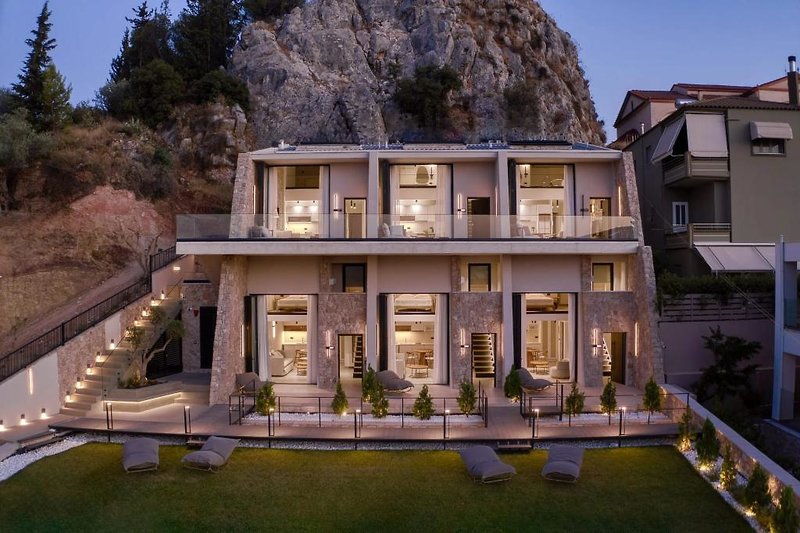 Willkommen in den Anima Deluxe Suites. Hier treffen Komfort und herzliche Gastfreundschaft aufeinander! Wir sind das ideale Ziel für alle, die ein luxuriöses Erlebnis mit hoher Ästhetik suchen. Unsere brandneuen Apartments verfügen über ein 5-Sterne-Zertifikat von NotifyBusiness und bieten alle modernen Annehmlichkeiten, um unseren Gästen unvergessliche Momente der Entspannung zu ermöglichen! Wir befinden uns in der Nähe eines Waldgebiets auf dem Hügel von Evangelistria. Wir sind nur 800 Meter vom Zentrum von Nafplio und den historischen Denkmälern der Gegend entfernt und nur 10 Gehminuten von Palamidi entfernt. Wir bieten einen Panoramablick auf das Meer und sind nur 1 km vom Strand von Arvanitia und 3, 5 km vom Strand von Karathona entfernt.
