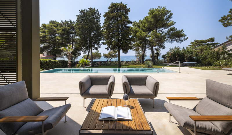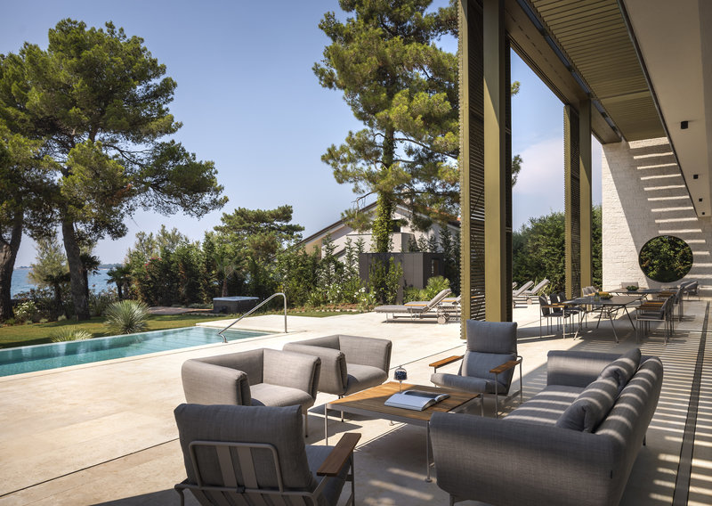 Allgemeine Beschreibung:In der Umgebung eines Sandstrandes gelegenes Hotel. Am Strand sind Sonnenliegen und Sonnenschirme kostenlos verfügbar. Die nächstgelegene Stadt ist Porec. Der Flughafen (PUY) ist ca. 60 km entfernt. Ein weiterer Flughafen (RJK) liegt in etwa 130 km Entfernung. Ausstattung:Das Hotel ist ausgestattet mit einer Rezeption sowie einer Lobby-Bar. Für das leibliche Wohl sorgt das Restaurant LUNA BEACH RESTAURANT. In den insgesamt 3 Bars des Hotels freut man sich über Ihren Besuch. WLAN steht den Hotelgästen kostenlos zur Verfügung. Wäsche-Service ist gegen Gebühr. Schwimmbad:Zum Außenbereich des Hotels gehören 2 Salzwasser-Pools mit einem separaten Kinderbecken. Hier stehen Sonnenliegen und Sonnenschirme kostenlos zur Verfügung. An der Poolbar sind erfrischende Getränke erhältlich. Sport/Freizeit:Sport- und Unterhaltungsangebote: Yoga und Fitness (ggf. geg. Gebühr). Wellness: Sauna und Massagen ggfls. gegen Gebühr. Zusätzliche Informationen:Für bestimmte Einrichtungen oder Aktivitäten können zusätzliche Gebühren anfallen. Einige Dienstleistungen hängen von der Jahreszeit und den lokalen klimatischen Bedingungen ab. Servicesprachen: englisch. 5 Schlafzimmer Strand Villa (Meerblick, Privater Pool - Terrasse):Die Zimmer sind ausgestattet mit Doppelbett, Babybett (kostenlos), Wasserkocher (kostenlos), Internet (kostenlos) und Flatscreen-TV.