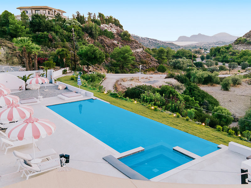 Lage: in ruhiger, ländlicher Umgebung, bis zum Strand von Ladiko ca. 900 m. Die bekannte Anthony-Quinn-Bucht ist ca. 1,5 km entfernt, Faliraki ca. 1,7 km und Rhodos-Stadt ca. 15 km. Eine Bushaltestelle in ca. 700 m.