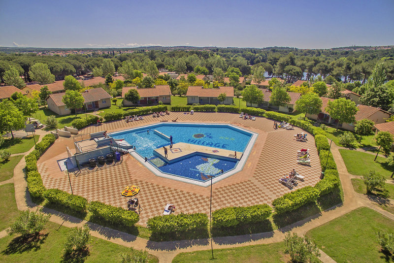 Die weitläufige Ferienanlage besteht aus einem Campingplatz, einem kleinen Hotel, sowie Appartements und Mobilheimen. Sie liegt rund 5 km von Pula entfernt direkt am Meer, mit Blick auf den vorgelagerten Nationalpark der Brijuni-Inseln.