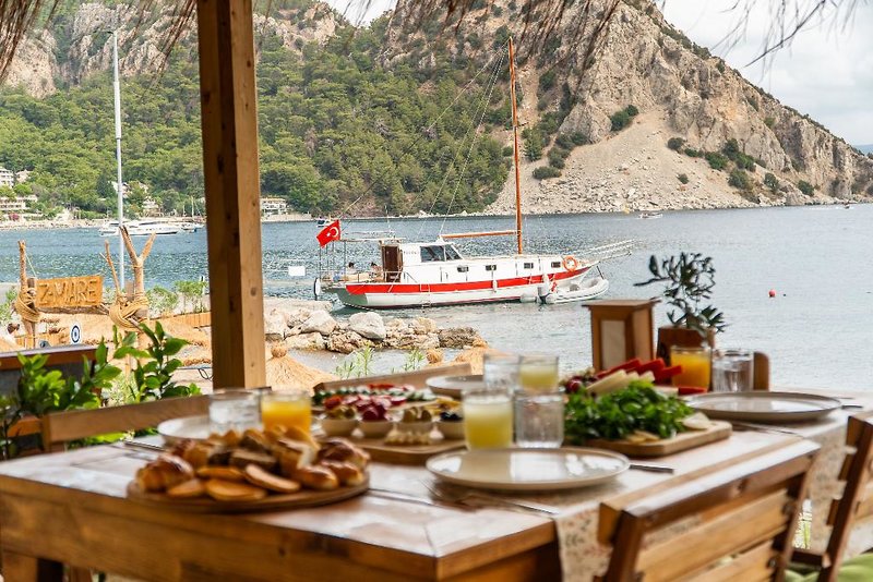 Z-Villas ist ein besonderer Rückzugsort für alle, die den Klängen der Natur lauschen und Ruhe im Grünen finden möchten. Die Villen mit privaten Pools sind in die unberührte Natur von Turunç, der schönsten Bucht von Marmaris, integriert. Diese besondere Anlage empfängt ihre Gäste mit ihrem herrlichen Ausblick und der ruhigen Atmosphäre an der Küste von Turunç und bietet ihnen mit ihrer herzerwärmenden Architektur und den naturnahen Details ein unvergessliches Unterkunftserlebnis. Die Terrassen der Villen, die mit privaten Pools ausgestattet sind, bieten eine außergewöhnliche Aussicht, bei der Sie den Sonnenuntergang genießen können. Sie können sorgfältig zubereitete Cocktails probieren, während Sie sich am Privatstrand oder am Gemeinschaftspool direkt vor der Unterkunft sonnen, Naturwanderungen unternehmen, an Radtouren teilnehmen oder die nahegelegene antike Stadt Amos besuchen. Außerdem bieten wir unseren geschätzten Gästen an unserem Strand kostenlose SUP- (Stand-up-Paddle-) und Kanu-Aktivitäten an.